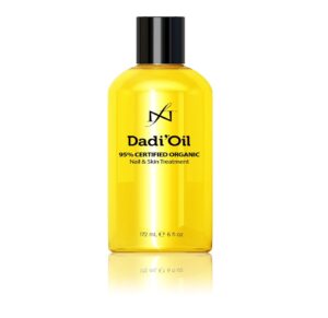 De olie is samengesteld en afkomstig van boeren die duurzame mix van drie gecertificeerde organische oliën – avocado, olijf en jojoba hebben gecombineerd die de huid en nagels beschermen, hydrateren en verzachten. Deze combinatie veroorzaakt door 21 essentiële oliën, waaronder citrus, vanille, citroen, bergamot, rozemarijn, lavendel en citroengras, biedt Dadi’Oil een heerlijke geurbeleving. Bovendien is het verrijkt met natuurlijke vitamine E, een krachtige antioxidant. Zo krijgen uw nagels de beste en meest natuurlijke verzorging die ze verdienen. Hierdoor zorgt u ervoor dat uitdroging voorkomen zeer gemakkelijk te doen is.