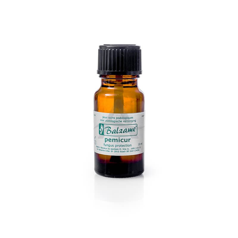 Sinds 1951 is Balzame Pemicur de optimale bescherming tegen schimmelinfecties. Balzame Pemicur bevat o.a. Eucalyptus, Tea Tree en Thijm samen met Piroctone Olamine. Deze krachtige symbiose garandeert een effectieve bestrijding van schimmelinfecties. De essentiële olie van Eucalyptus zal je huid diep reinigen en voorbereiden om alle zorg effectiever te ontvangen. Het zal je huid ook aangenaam geuren en het zijn antivirale, antimicrobiële, antischimmel- en antiseptische eigenschappen geven. Thijm is een zeer krachtig antisepticum en onmisbaar. Het wordt veelvuldig gebruikt voor alle “moeilijke” infecties en is effectief tegen huidparasitoses. Tea Tree is een zeer krachtige antibacteriële olie! Bijzonder effectief in de strijd tegen vele infecties Hij dient als vloeibare behandeling bij schimmel. Omdat hij vloeibaar is dringt ie gemakkelijk door de nagel heen en wordt hij goed verspreid in de nagelrand. Na volledige verwijdering van de nagel, wordt een permeabele kunstnagel aangebracht bv. Acrytensil van R. Fräser, zodoende kan de Pemicur doorheen de kunstnagel dringen en het nagelbed en -rand beschermen tegen schimmel.