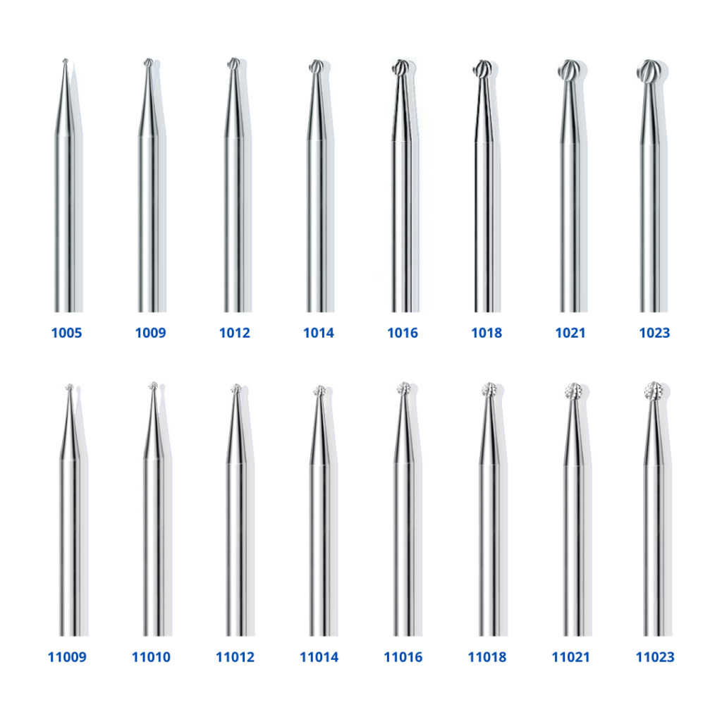 De staal 1RS serie van Busch (Busch Bolkopfraisen RVS) is een bolkopje geschikt voor het verwijderen van hematoom/bloeduitstortingen en likdoorns onder het nageloppervlak. De 1RS/005 is het kleinste en de 1RS/023 is het grootste stalen bolkopje.