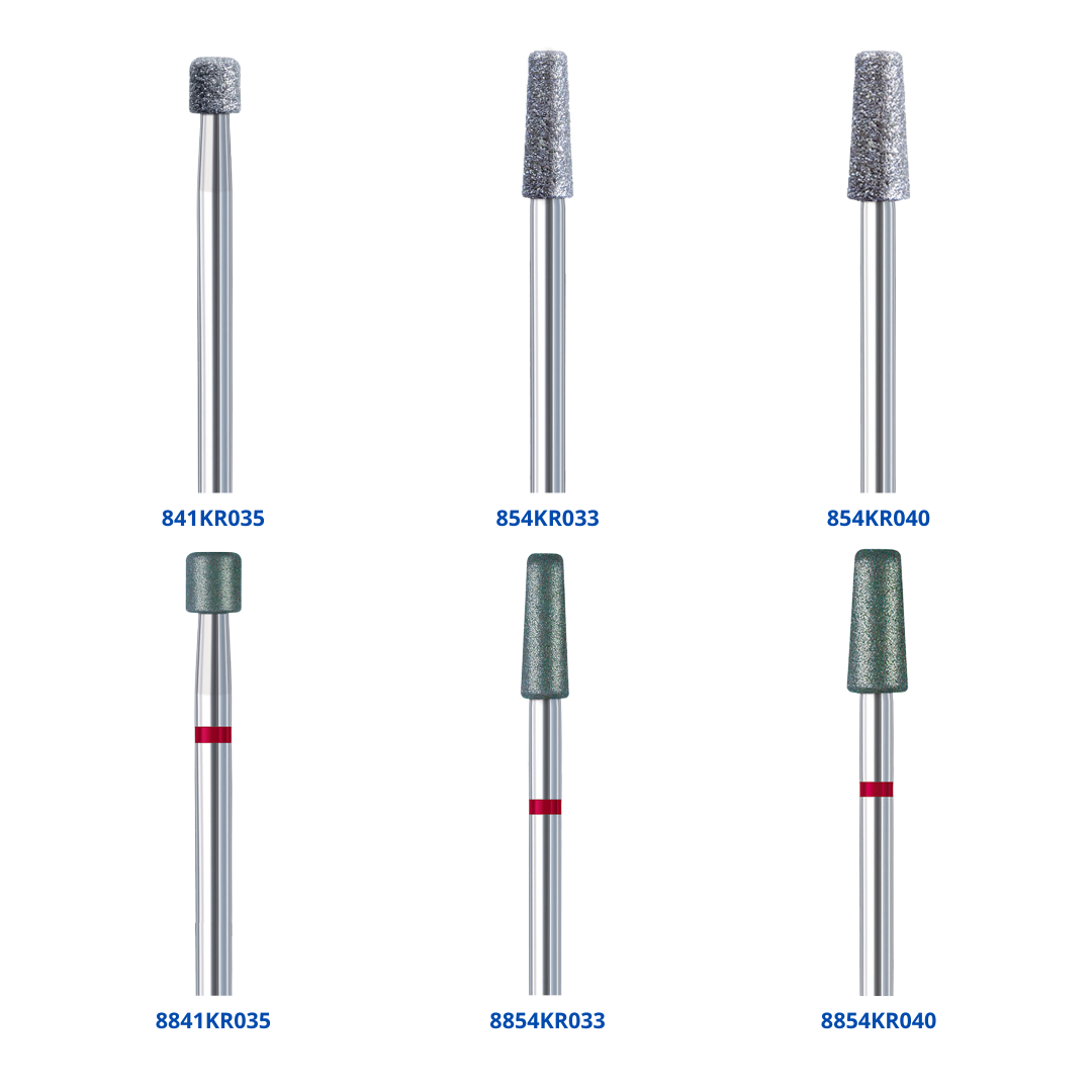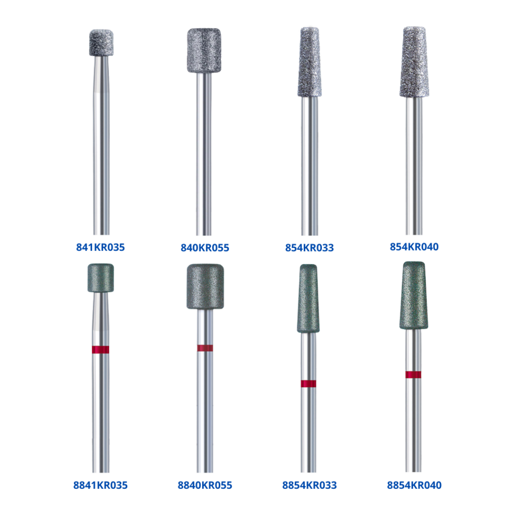 De KR-serie fraisen van Busch zijn diamant frezen met afgeronde hoeken die het risico op huidbeschadigingen beperken. De afgeronde hoeken zorgen voor een ”passieve veiligheid” tijdens het gladmaken van de nagels of het verwijderen van eelt. De fraisen zijn geschikt voor het behandelen van diabeten. Diamantfraisen van Busch zijn opgebouwd uit meerdere lagen diamantsplinters, hierdoor zijn de frezen erg hard en slijten minder snel. Diamantfraisen gaan erg lang mee. De steel van de frais is van edelstaal – geen roestvorming mogelijk. Busch fraisen zijn bestand tegen reinigings- en desinfectiemiddelen en zijn indien gewenst steriliseerbaar.