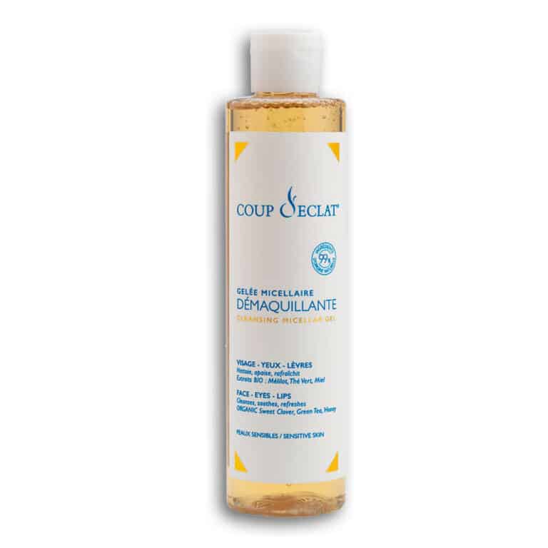 Coup D’eclat Cleansing Micellar Gel 250ml; Reinigt, kalmeert en verfrist het gezicht, de ogen en de lippen. Eigenschappen: COUP D’ECLAT® Micellaire Reinigingsgel verwijdert op milde wijze make-up en reinigt de opperhuid. Geconcentreerd in antioxiderende en verzachtende actieve bestanddelen, verwijdert het alle soorten make-up (zelfs waterproof) en maakt het de huid fris, schoon en comfortabel. De geltextuur zorgt voor een aangenaam verzachtend gevoel dat zelfs geschikt is voor de gevoelige huid en de ogen. Gebruikerstips: s Morgens en/of ’s avonds met een wattenschijfje of met de vingertoppen aanbrengen op het gezicht in licht draaiende bewegingen over gezicht, hals, ogen en lippen. Zonder spoelen, verwijder het teveel met een watje.