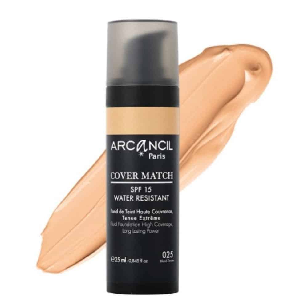 Arcancil cover match foundation waterresistent 025 blond tendre Cover Match is de vlekkeloze basis! Het gaat lang mee en is waterresistent , en is verkrijgbaar in 8 verschillende tinten voor zowel de lichte als de matte huid. De vloeibare formule is gemakkelijk aan te brengen en biedt een perfect en uniform kleurresultaat zonder enige onvolkomenheid. SPF15 Capaciteit : 27 ml Resultaat : De huid is de hele dag perfect glad en egaal!