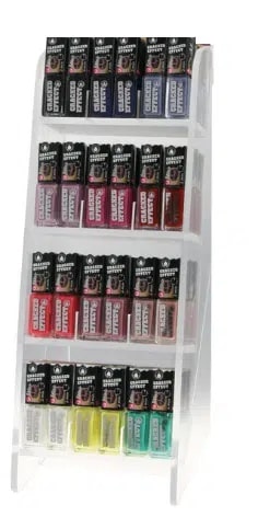 DEPEND Display mini nagellak; Perspex display voor het presenteren van bijvoorbeeld de Depend Nailpolish O2 nagellak. Plaats voor 24 x 3 flesjes nagellak.   Let op! Het betreft een lege display.