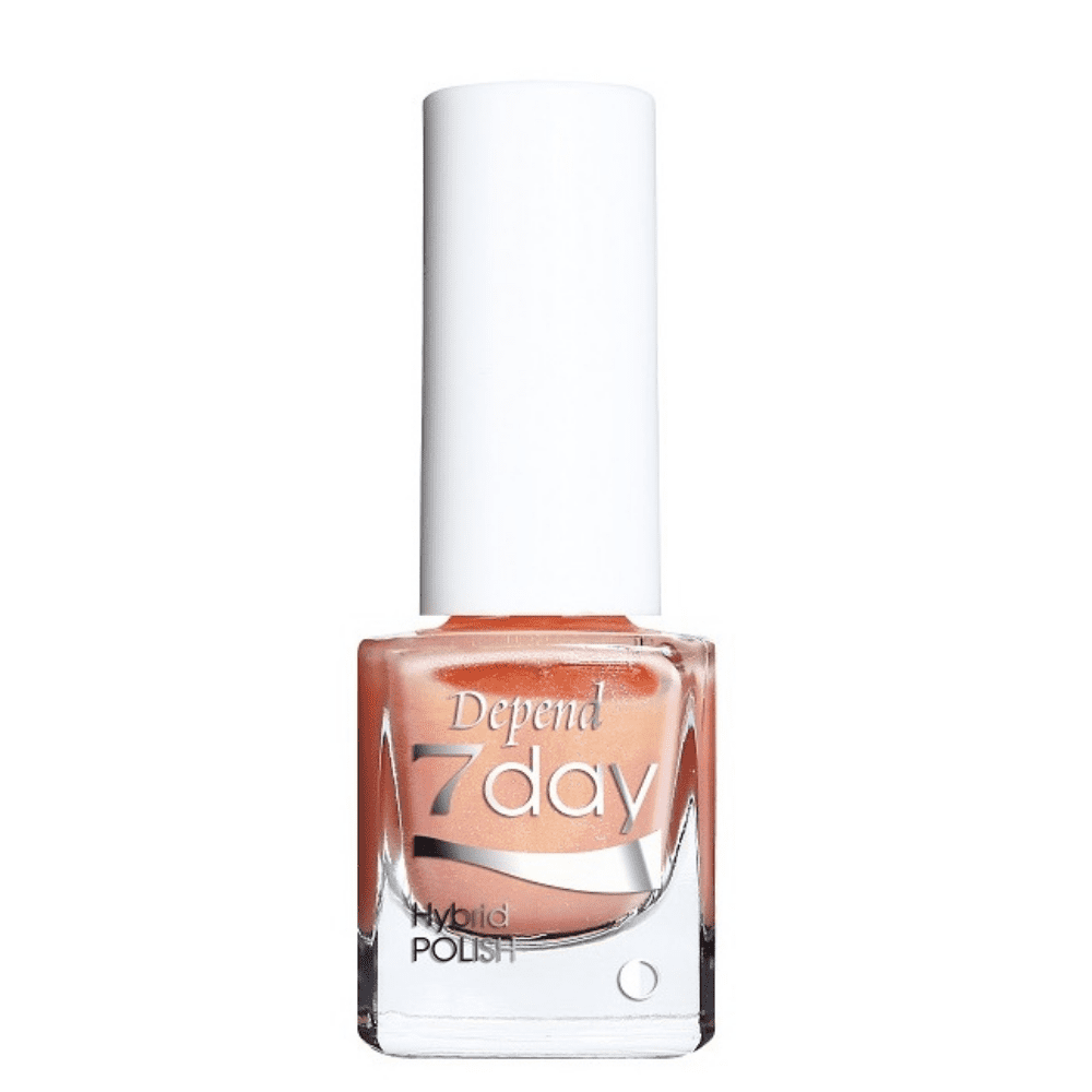 Alle kleuren kan je hier vinden Depend hybride 7Days   Depend 7day is een nagellak systeem voor als je een nagellak wilt met superglans, top duurzaamheid en een “gel gevoel”. Deze hybride formule blijft tot een week zitten, is gemakkelijk aan te brengen en is gemakkelijk te verwijderen met Depend nagellakremover. Geen LED/UV lamp nodig – dit nagellaksysteem hardt uit bij normaal daglicht of elektrisch licht.