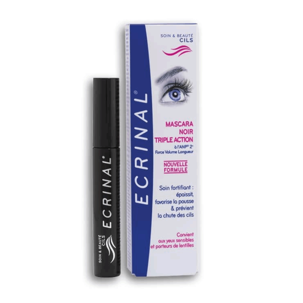 Ecrinal Versterkende zwarte mascara; Uw wimpers verzorgen tijdens het aanbrengen van make-up. Inhoud 7ml. Eigenschappen:  Geschikt voor verzwakte, te korte, te dunne wimpers. Verzorgt en versterkt de wimpers. Geeft ze volume en verlengt ze zichtbaar. Hun groei wordt ook gestimuleerd dankzij de Zijde in de formule. Gebruikerstips: Rechtstreeks op de wimpers aanbrengen met het borsteltje. Voor een verleidelijk effect in meerdere lagen aanbrengen en ze goed laten drogen tussen elke laag. Deze mascara is gemakkelijk te verwijderen. Geschikt voor dragers van contactlenzen.