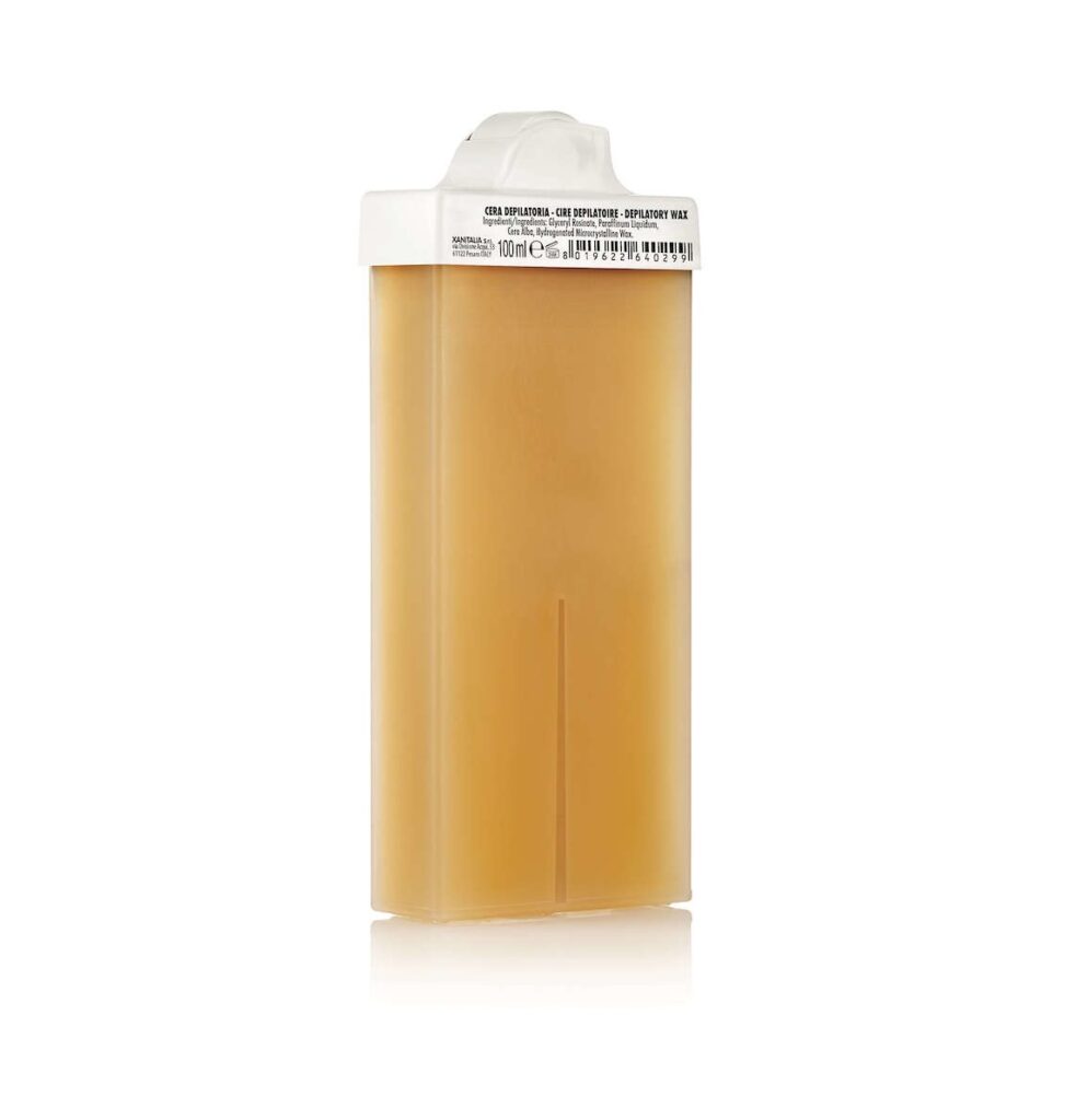 Harspatroon met honinghars, 100 ml, kleine roller voor het harsen van het bovenlip en wenkbrauwen. In olie oplosbare hars: aanbrengen op een volledige vetvrije huid, restjes verwijderen met afterwax olie. De harspatronen hebben een vaste roller die niet te verwijderen of vervangen is. De harsroller rolt snel en gemakkelijk op de huid. Honinghars is de traditionele geel-transparante ontharingshars die ook de meest stugge haren verwijdert. Ongeparfumeerde hars, zonder kleurstof. Italiaanse kwaliteitshars van Xanitalia!