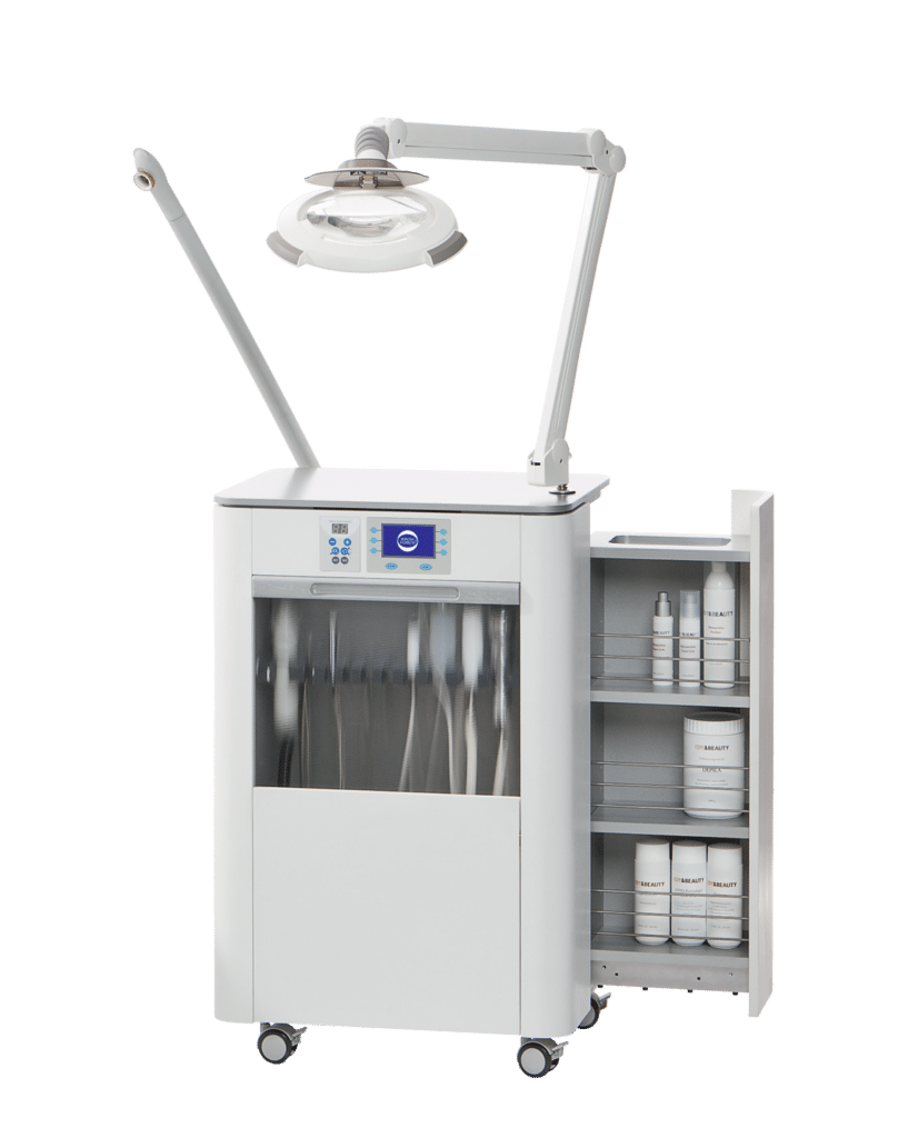 Deze unit combineert actuele effectieve systemen die door de cosmetoloog worden gebruikt. Alle functies van de oogstmachine zijn verborgen in een kleine elegante koffer. Het apparaat wordt bediend vanaf het frontpaneel van het apparaat met behulp van een gebruiksvriendelijk aanraakmenu: alle benodigde informatie wordt weergegeven op het display. Speciale plank voor het plaatsen van werktips. 4 planken van verschillende hoogtes voor verbruiksartikelen en cosmetica. Ingebouwde houder voor een loeplamp (loeplamp apart te bestellen). Combineer functies: – borstelen, – stofzuigen, vacuümmassage van gezicht en lichaam, spray, – iontoforese en korstvorming, – micromassage, lymfedrainage van gezicht en lichaam, – thermotherapie (warmte-koud), – darsonval, – een modern model van de IONTO STEAM-stomer met aromatherapie- en ozonisatiefuncties; Door de aanwezigheid van extra carrosseriekleuren past de maaidorser perfect in het interieur van elke salon, SPA of Wellness. 3 bekledingsopties: decor in donker hout (wenge), decor in licht hout (esdoorn). Met de IONTO Beauty Concept maaidorser krijg je een mooie en comfortabele werkplek met de nieuwste snufjes op het gebied van cosmetologie.