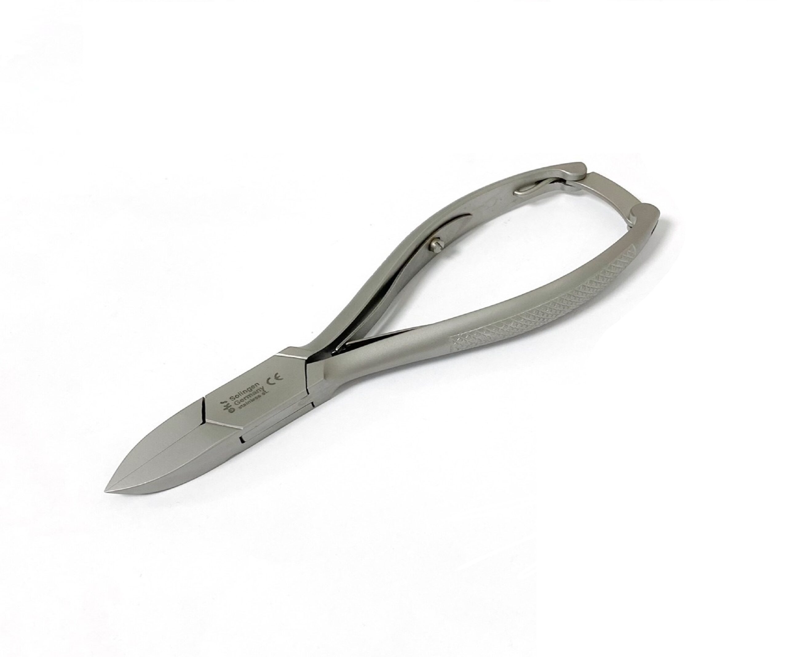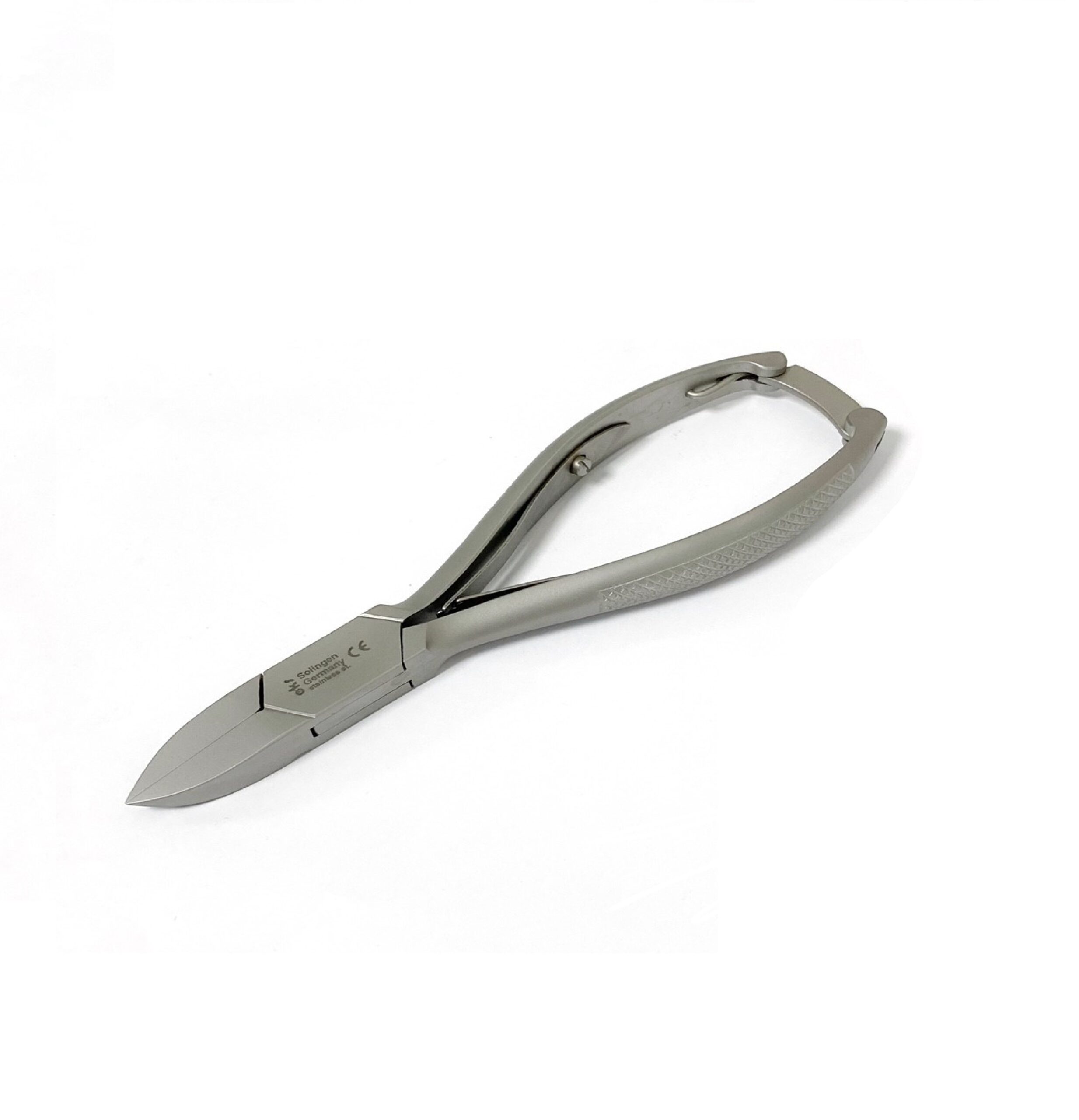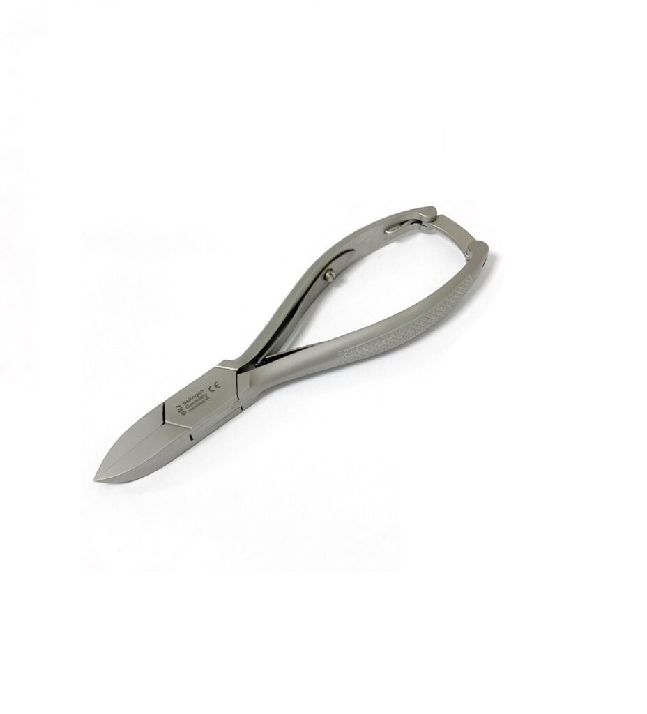 Kruisveertang met holle of vlakke bek, Doorgestoken. 14 cm, Voorzien van sluitbeugel.