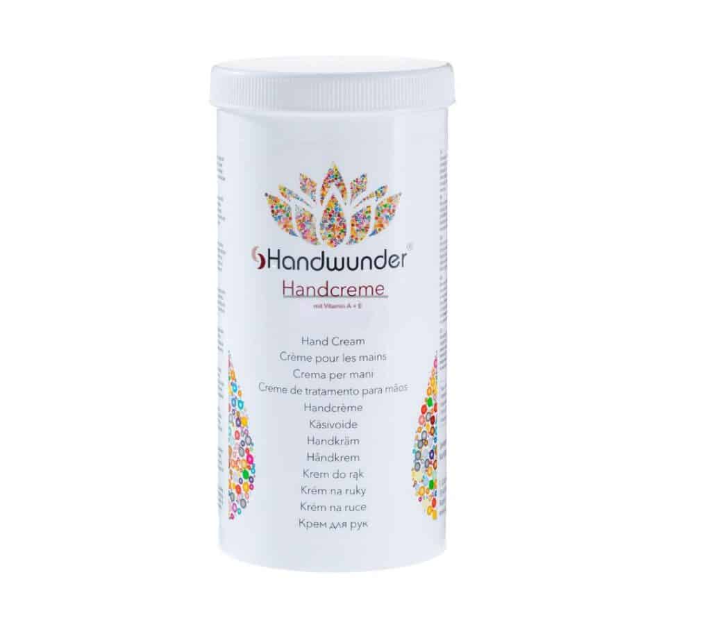 Handwunder handcrème met plantenextracten en vitamine A+E trekt snel in de huid en is niet vet. De handen worden weer glad en soepel. Bij dagelijks gebruik geeft de crème bescherming tegen invloeden van buitenaf. Handwunder handcrème betekent dus een aangename verzorging en langdurige bescherming.