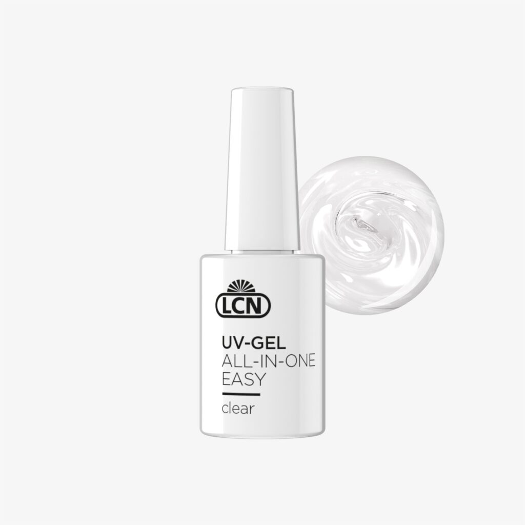 3-in-1 gel voor nagels. De UV gel All-in-One Easy is een 1-fase opbouwgel in een kwastflesje en is geschikt voor alle nageltypes. Het combineert hechtende, opbouwende en verzegelende eigenschappen in één UV-gel. All in One Gel Easy” biedt een hoge stabiliteit voor alle nagellengtes en kan ook worden gebruikt voor extensions met tips of sjablonen. De modellering met de “All in One Gel Easy” kan worden afgewerkt met alle topcoats, afhankelijk van de gewenste kleur.
