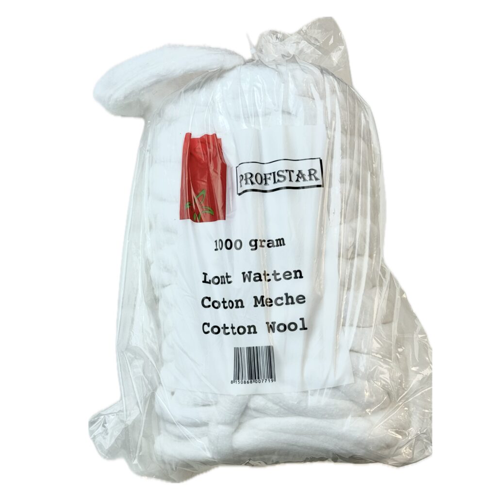 Lontwatten zitten in een zak van plastic en wegen 1000 gram. Ze  zijn van de hoogste kwaliteit en bestaat uit 20% katoen en 80% Viscose.