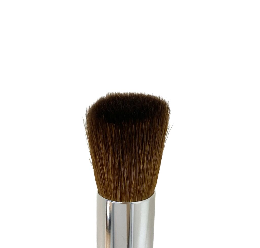 Rond stomp, zuiver ponyhaar, goed geschikt voor het aanbrengen van rouge, appelwangen, barokke make-up en glitter. Zwart handvat