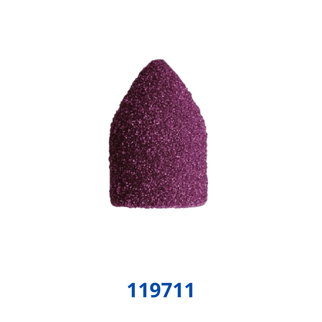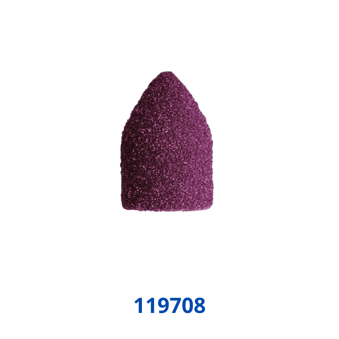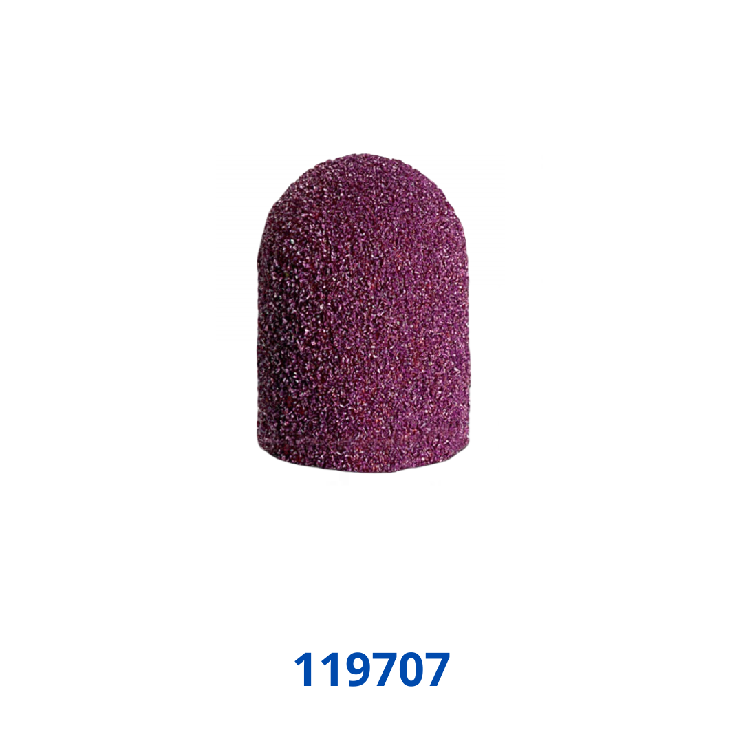 Slijpkappen (Paars), de traditionele methode van eeltbehandeling. Ondanks het gevarieerde aanbod van diamantfraisen zijn de slijpkappen nog steeds een geliefd product. Kleurverandering zorgt voor huidbescherming. Zeer geschikt voor diabetici omdat zij (soms) aan hun voeten vaak een verminderde waarneming van temperatuur en pijn (neuropathie) hebben. De ultramoderne THERMO-slijpkap beperkt dit risico tot een minimum. Voor gebruik in combinatie met een slijpkaphouder. Verkrijgbaar in verschillende maten, vormen, grofheden en kleuren.