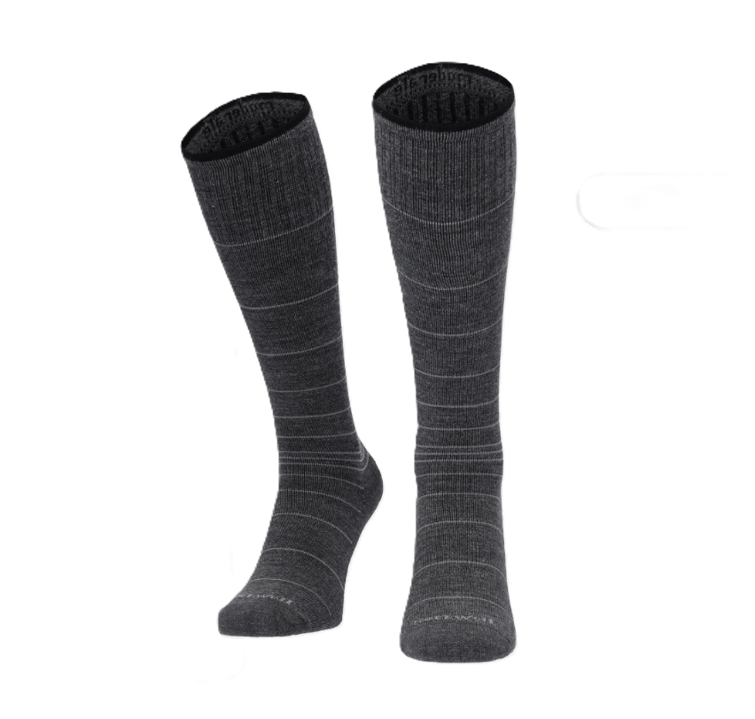 De Sockwell Circulator in de kleur grijs met streepmotief is een modieuze klasse 1 compressiekous voor heren. De lichte compressie in de kousen stimuleert de bloedsomloop voor een energieker gevoel na een lange dag staan of zitten. Tevens worden opgezwollen en vermoeide voeten en benen geminimaliseerd. Hoogwaardige, natuurlijke materialen zorgen voor een hoog draagcomfort.