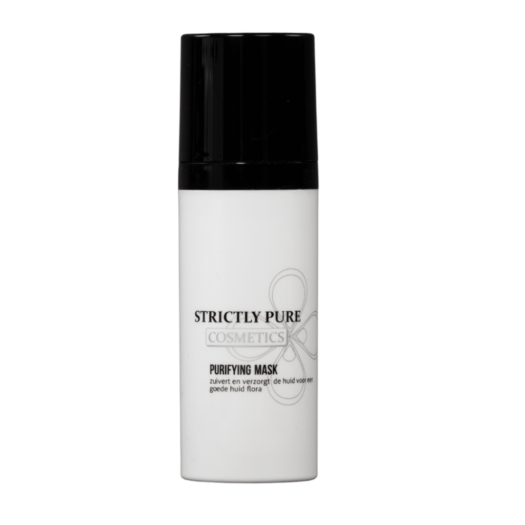 Zuivert en verzorgt de huid voor een goede huid flora. Strictly Pure Purifying Mask; Bevat net als de crème jonge huid plantaardige oliën zoals jojoba olie en druivenpitolie, daarnaast de isostearyl isostearate voor de hydratie. En uiteraard ook de Sepicontrol A5, naast sheabutter en vitamine E.   Inhoud: 50 ml
