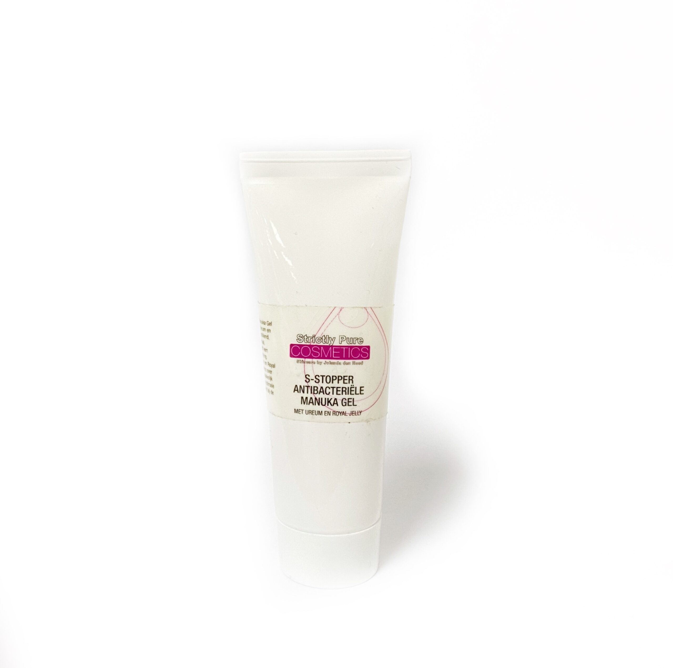 Strictly pure S-stopper antibacteriële manuka gel S-stopper antibacteriële manuka gel met de toevoegingen van ureum en Royal Jelly ( honing ) is pijnstillend, anti- allergisch, anti viraal, schimmeldodend en heeft een brede antibacteriële werking. Door de toevoeging van ureum en Royal Jelly beschikt deze crème tevens over en ph regulator, dringt gemakkelijk in de opperhuid en staat een optimale hydratatie toe. Tevens geschikt bij de verzorging van acne