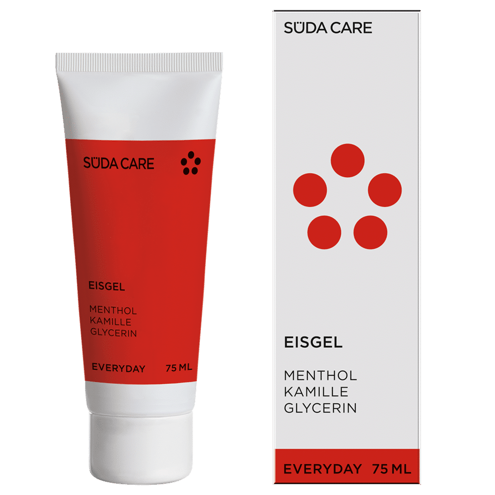Suda Care Everyday Eisgel 75ml; Verkoelende voetbalsem voor vermoeide en branderige voeten. Vooral na zware belasting van voeten en benen door lang staan, of intensieve sportbeoefening of lopen is ijsgel aangenaam verfrissend voor de vermoeide huid. Terugvettende bestanddelen samen met etherische oliën verzorgen de huid. Het mentholgehalte zorgt voor langdurige verkoeling.   Inhoud: 75ml