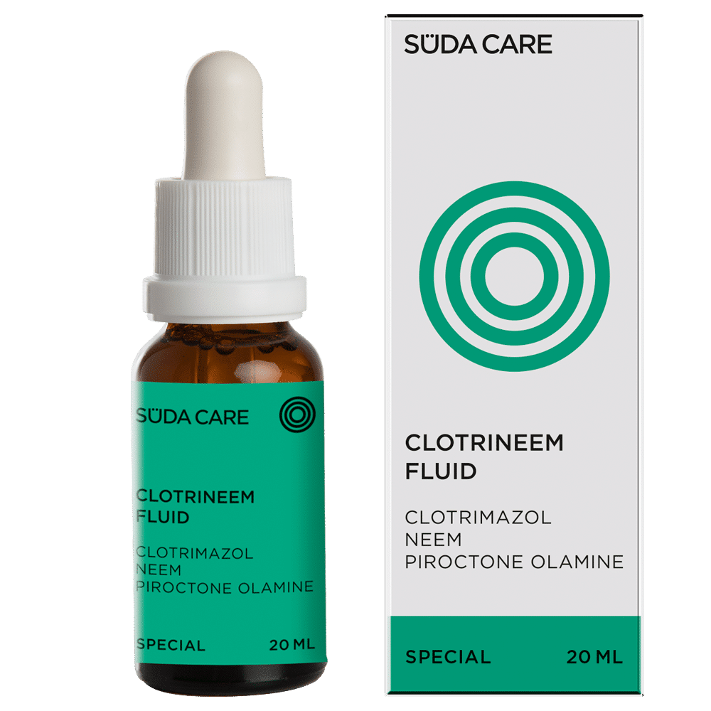 Suda Care Special Clotrineem Tinctuur 20ml; Voor de preventie en het onderhoud van nagels met risico op mycose. Naast het Neembladextract met zijn ontstekingsremmende en antibacteriële eigenschappen is hier de werkzame stof Clotrimazol in de goedgekeurde dosering gebruikt. Clotrimazol vernietigt het celmembraan van schimmels – dit resulteert in schade aan de membraanstructuur van de schimmels. Daarnaast werd piroctone-olamine gebruikt, wat resulteert in de remming van de energiestofwisseling in de mitochondriën van de paddenstoelen. De ziekteverwekkers kunnen zo’n beschermde huid niet binnendringen. Voor medische verzorging.   Inhoud: 20ml